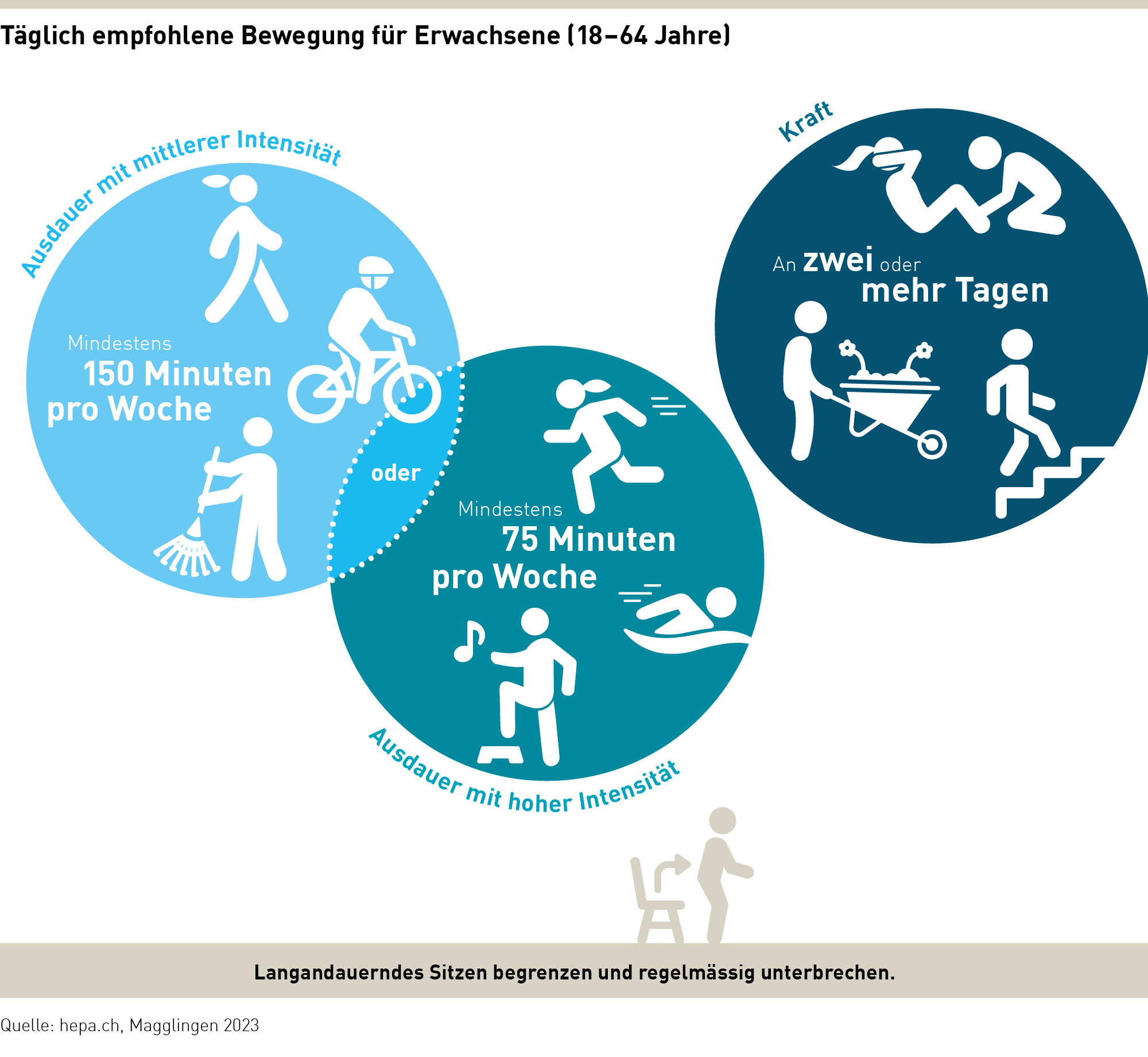 Viele der weltweit drastisch zunehmenden Krankheiten wie Übergewicht, Stoffwechselerkrankungen, Herz-Kreislauf-Probleme, Erkrankungen des Bewegungsapparates, onkologische Erkrankungen, Gemütsleiden und neurologische Erkrankungen können heute unter anderem auf Bewegungsarmut zurückgeführt werden.